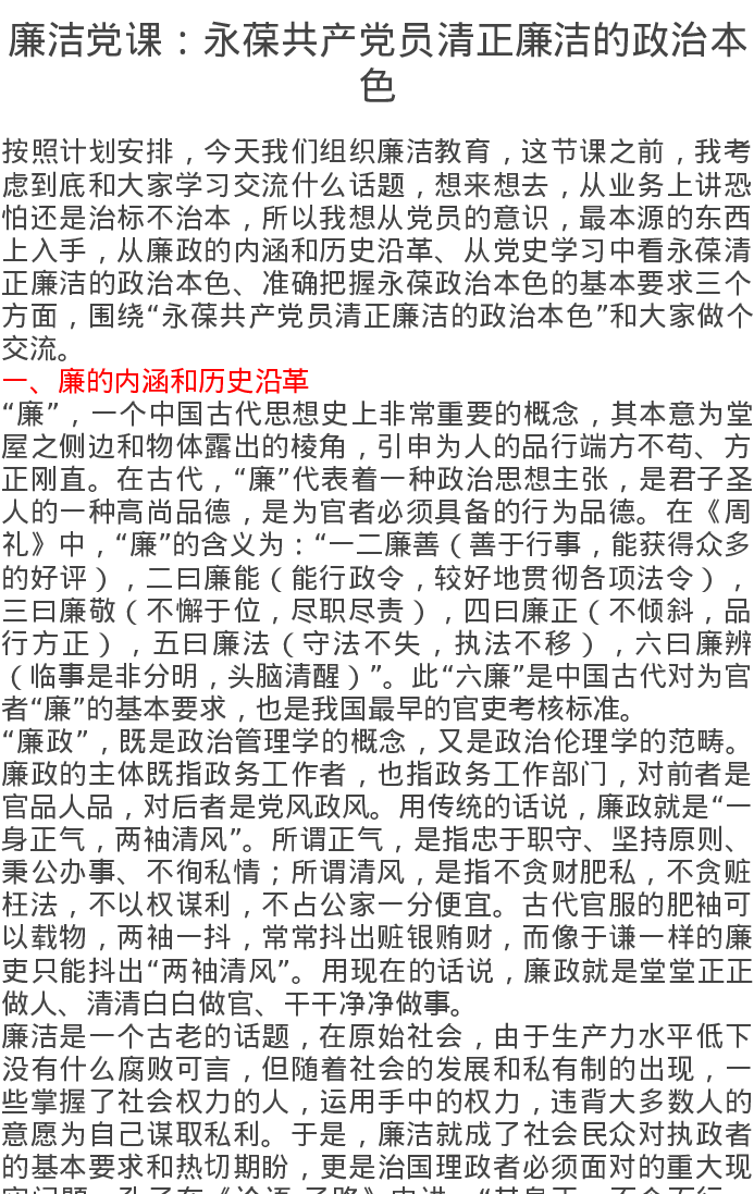廉洁党课永葆共产党员清正廉洁的政治本色