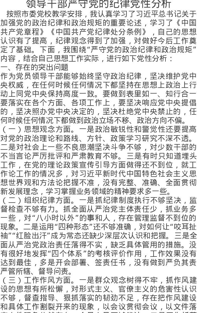 领导干部严守党的纪律党性分析