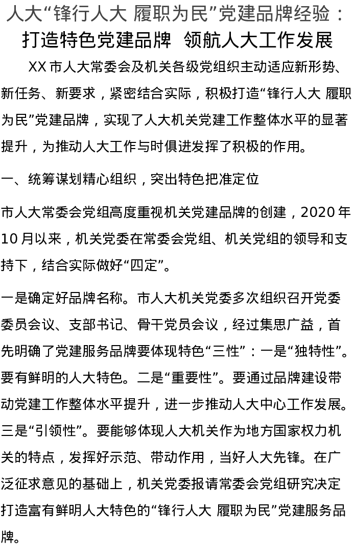 人大锋行人大履职为民党建品牌经验打造特色党建品牌领航人大工作发展