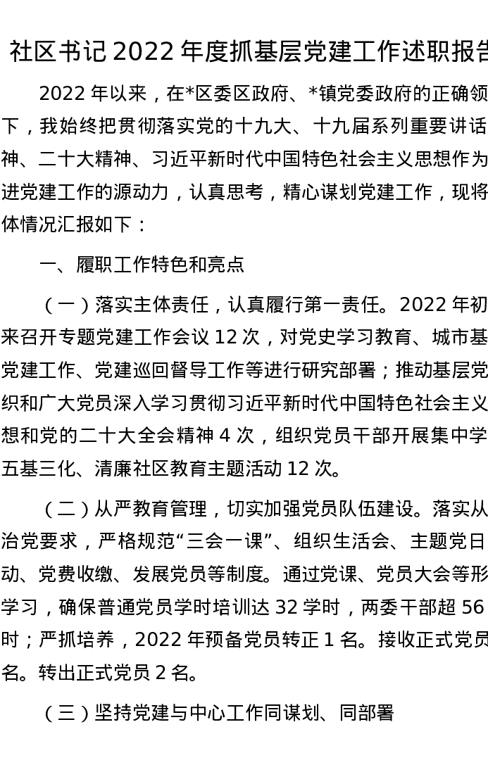 社区书记2022年度抓基层党建工作述职报告1