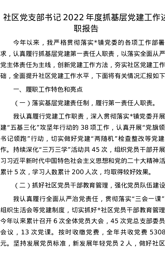 社区党支部书记2022年度抓基层党建工作述职报告1
