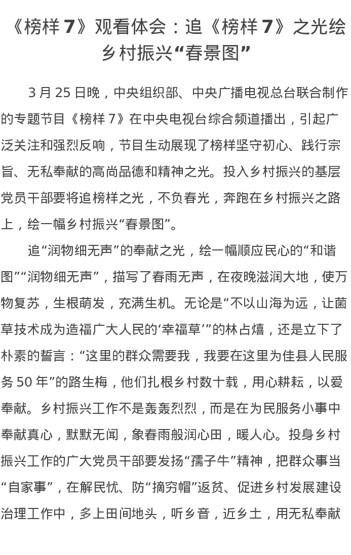 《榜样7》观看体会:追《榜样7》之光绘乡村振兴“春景图”