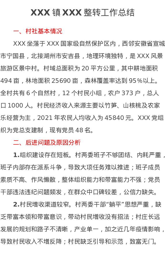 村后进党组织整转总结