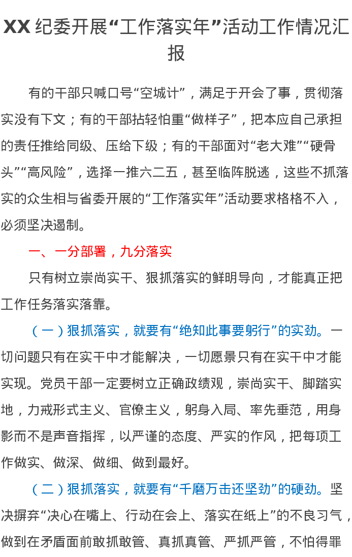 XX纪委开展“工作落实年”活动工作情况汇报