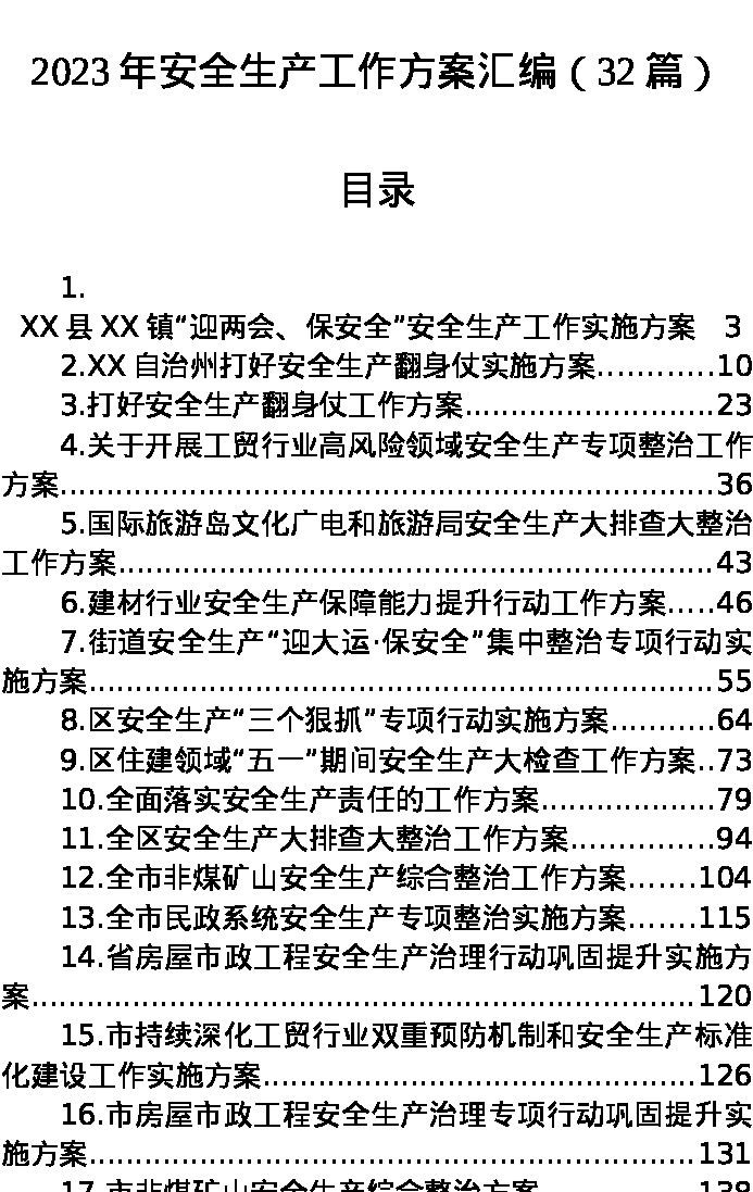 汇编:2023年安全生产工作方案32篇