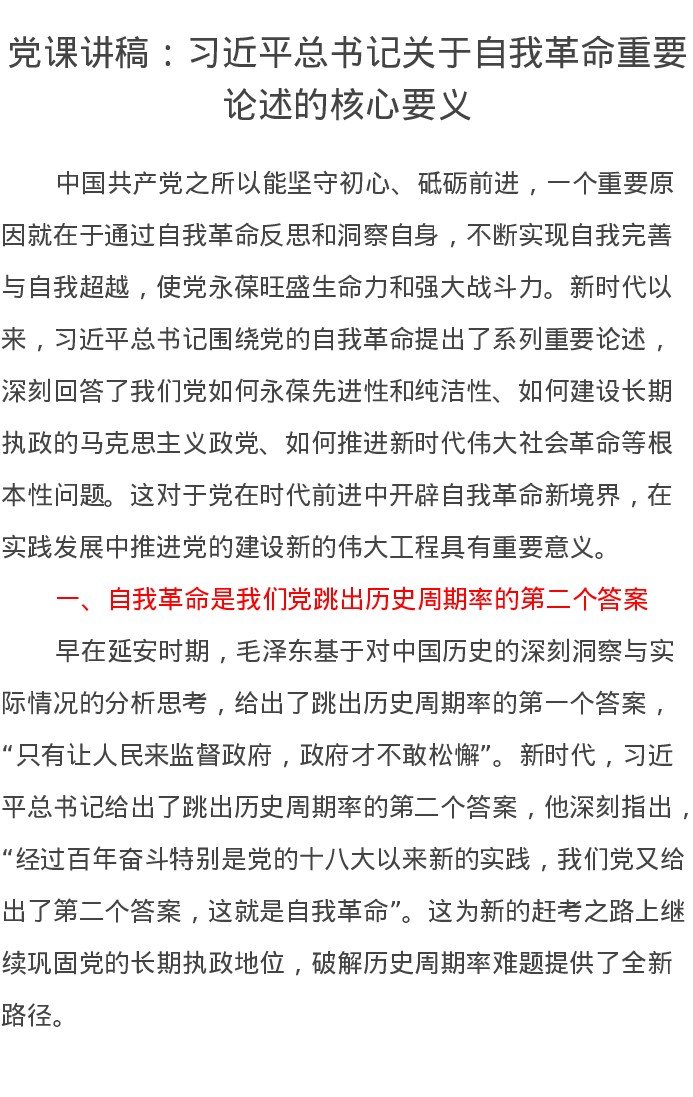 党课讲稿:习近平总书记关于自我革命重要论述的核心要义