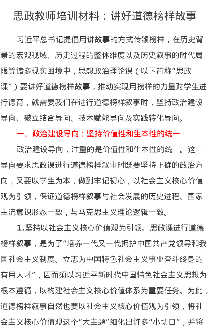 思政教师培训材料:讲好道德榜样故事