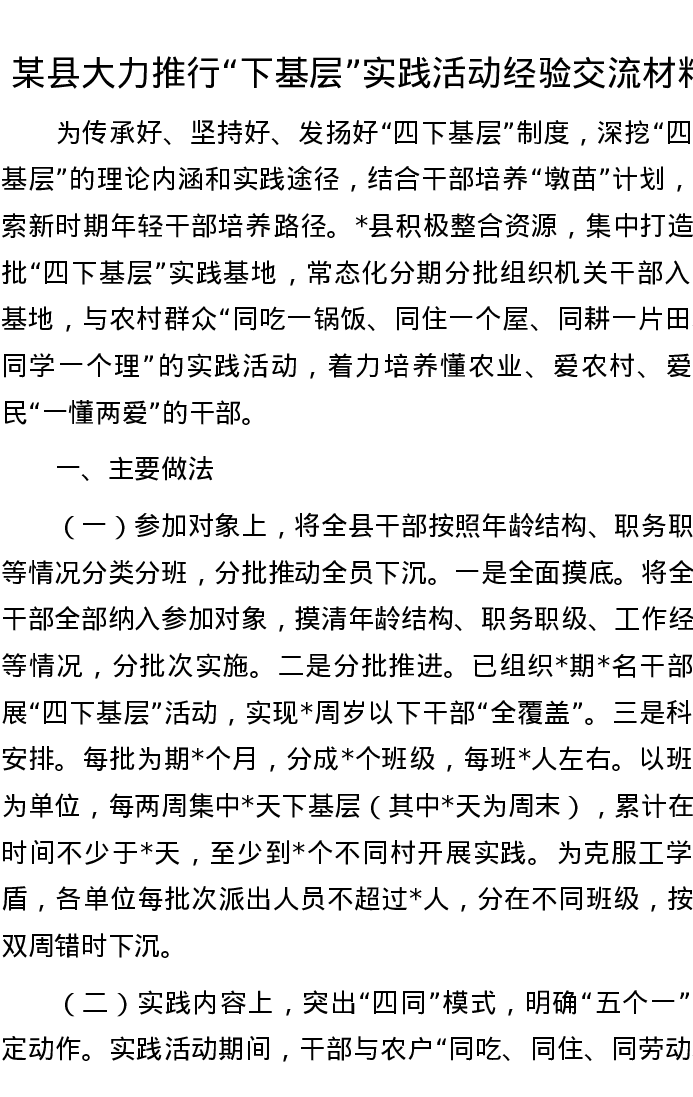 某县大力推行“下基层”实践活动经验交流材料