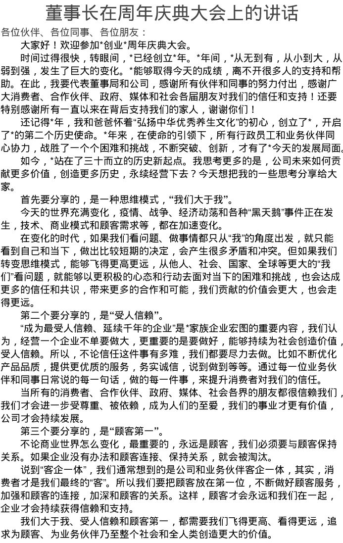 董事长在周年庆典大会上的讲话