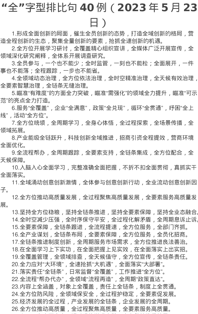 “全”字型排比句40例(2023年5月23日)