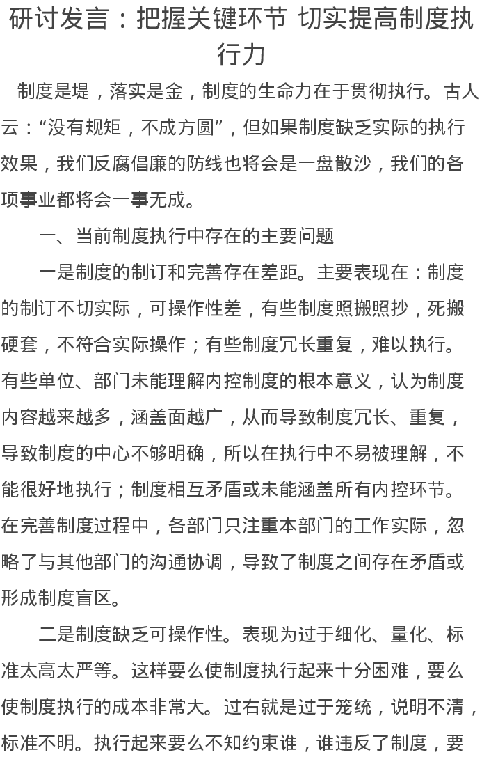 研讨发言把握关键环节切实提高制度执行力