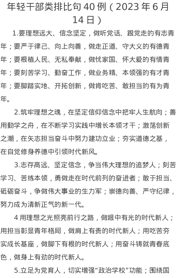 年轻干部类排比句40例(2023年6月14日)