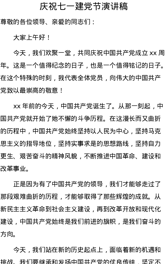 庆祝七一建党节演讲稿