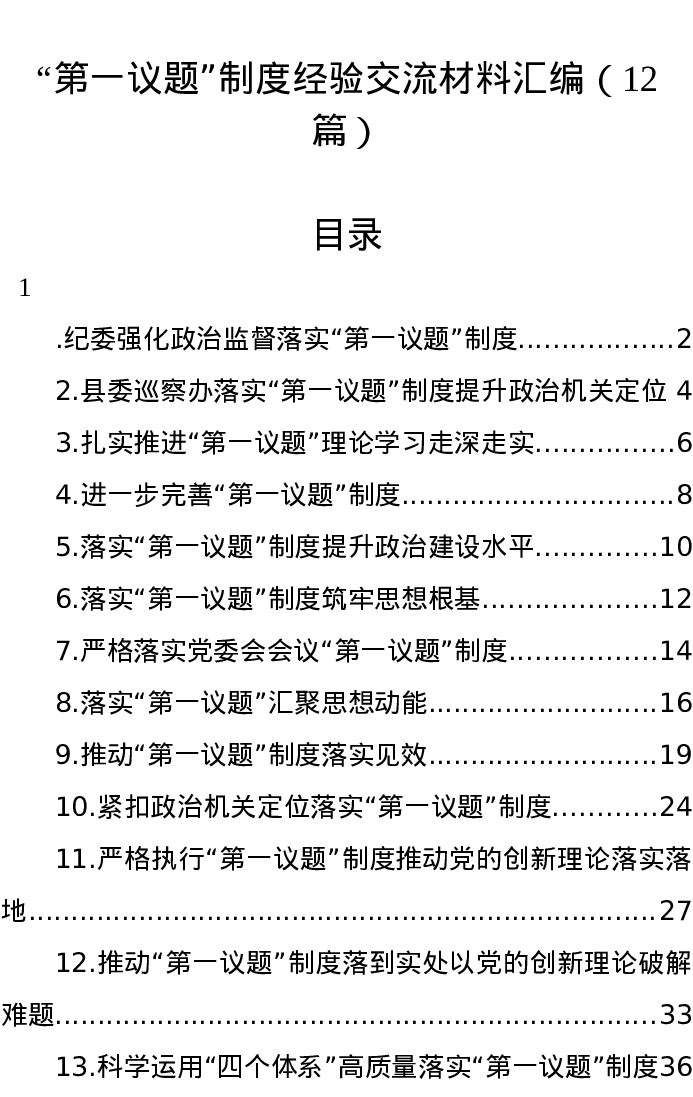 汇编:“第一议题”制度经验交流材料汇编12篇