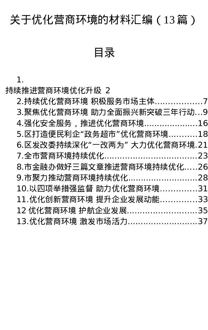 汇编:关于优化营商环境的材料13篇