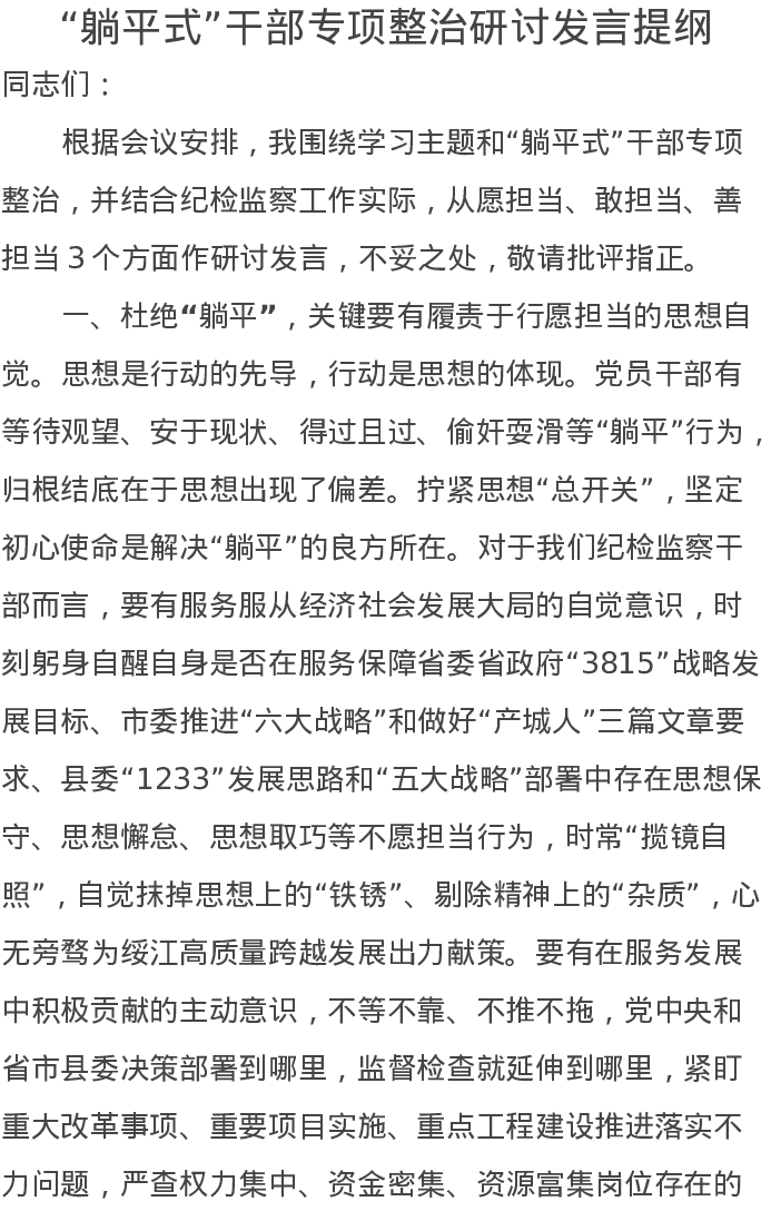 “躺平式”干部专项整治研讨发言提纲