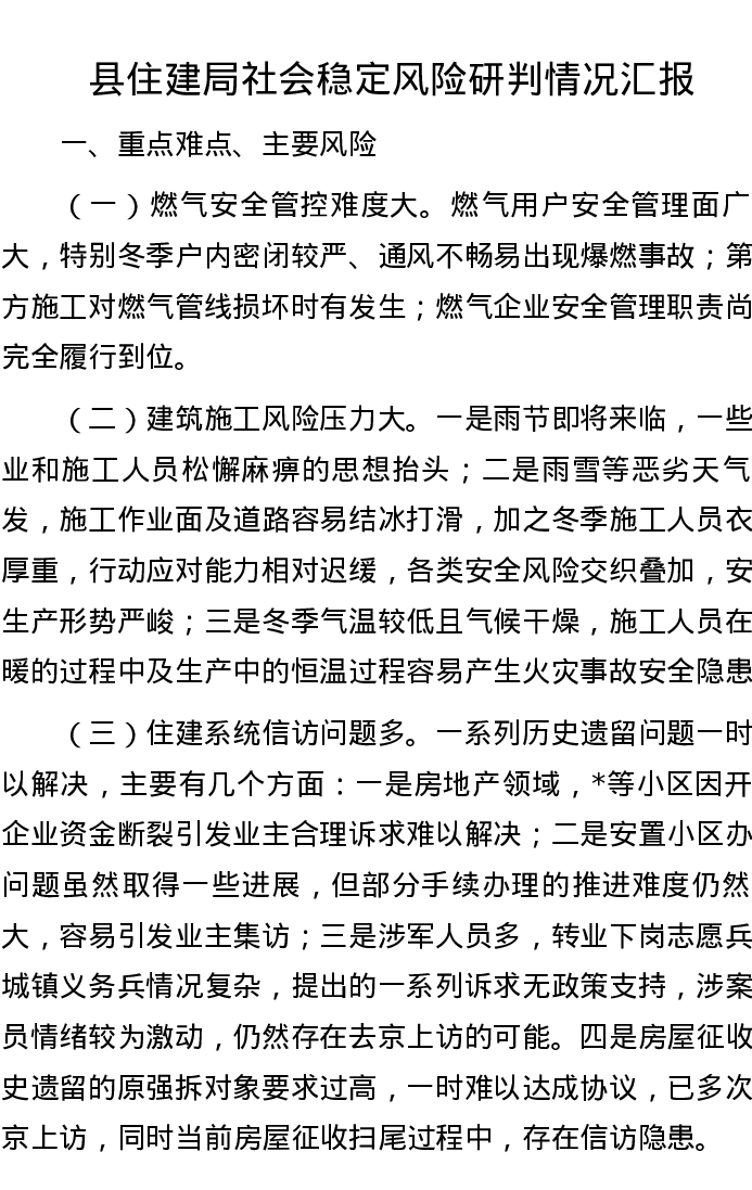 县住建局社会稳定风险研判情况汇报