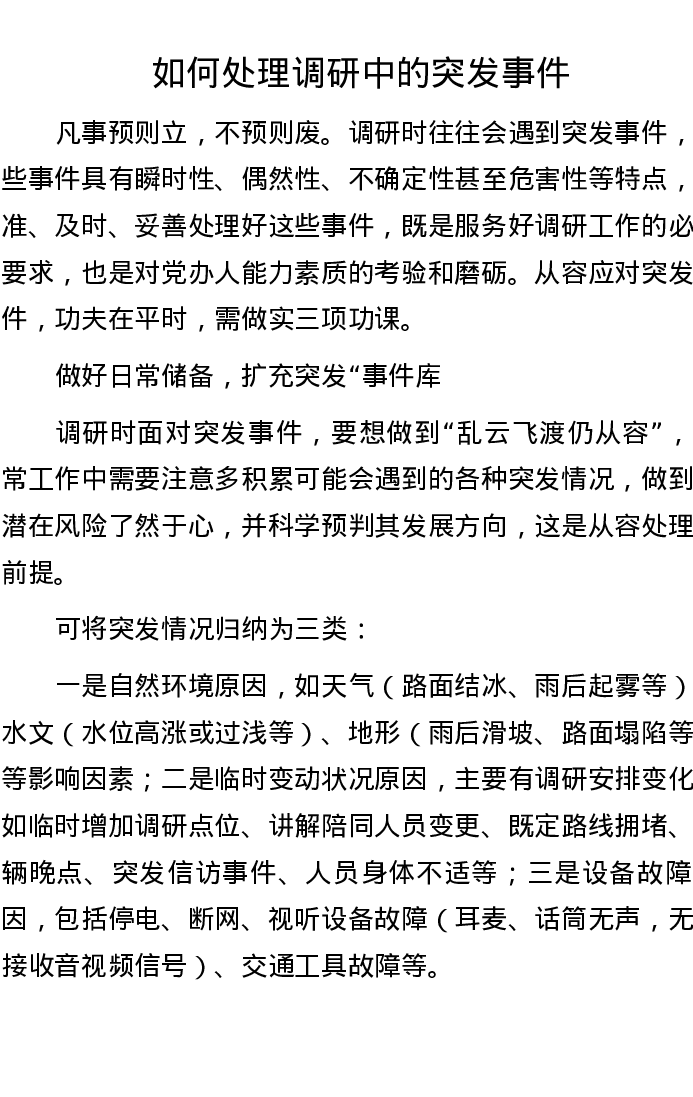 如何处理调研中的突发事件
