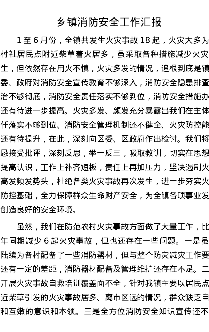 乡镇消防安全工作汇报