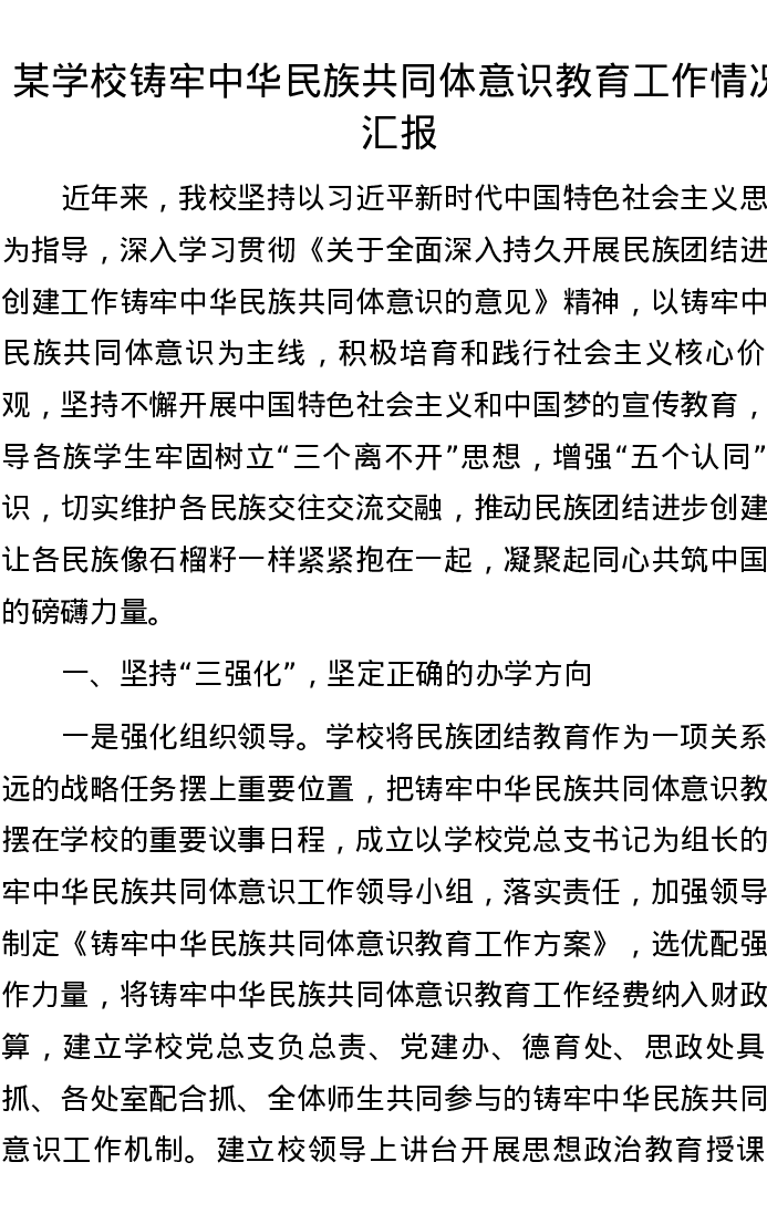 某学校铸牢中华民族共同体意识教育工作情况汇报