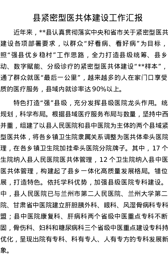 县紧密型医共体建设工作汇报