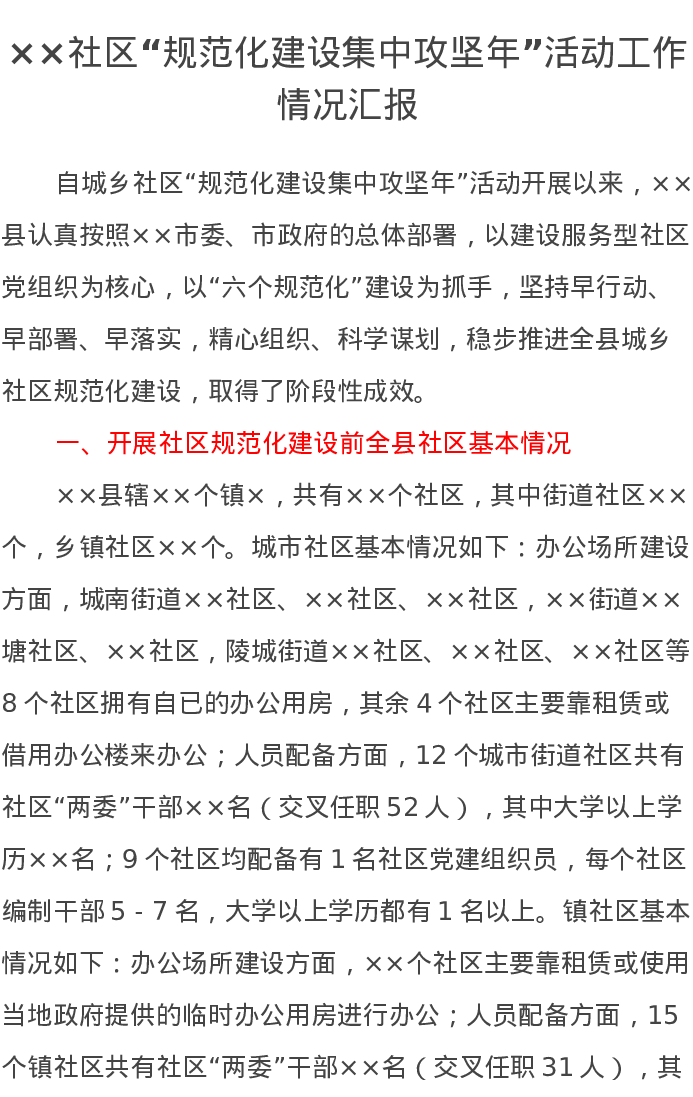 ××社区“规范化建设集中攻坚年”活动工作情况汇报