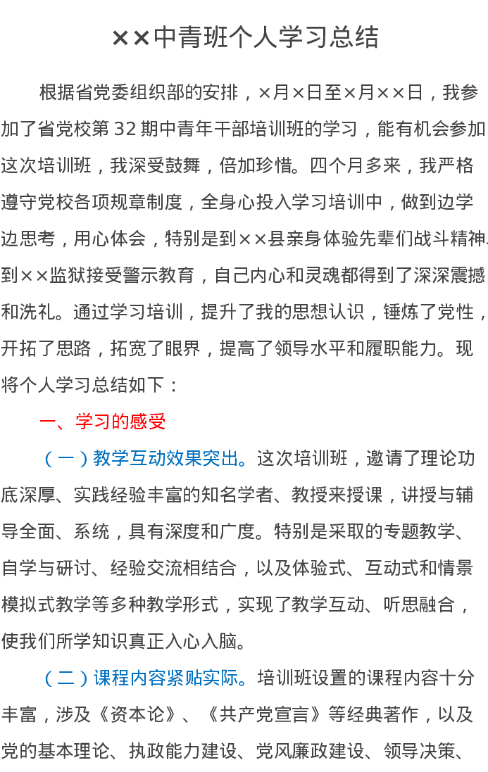 ××中青班个人学习总结