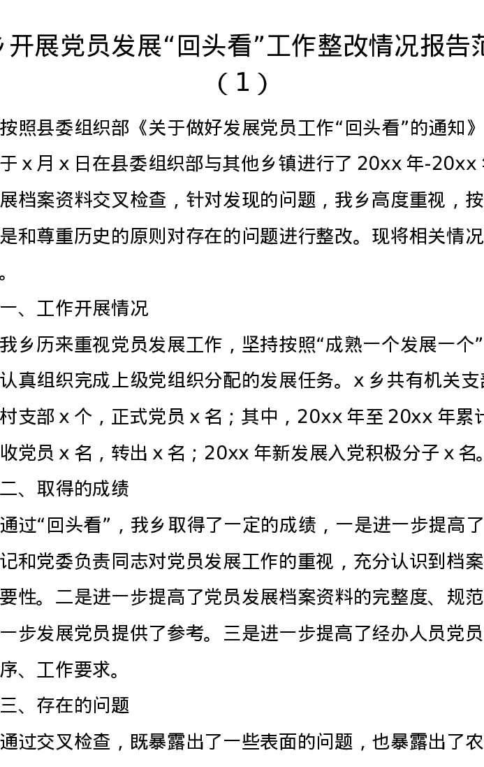 汇编:x乡开展党员发展“回头看”工作整改情况报告2篇
