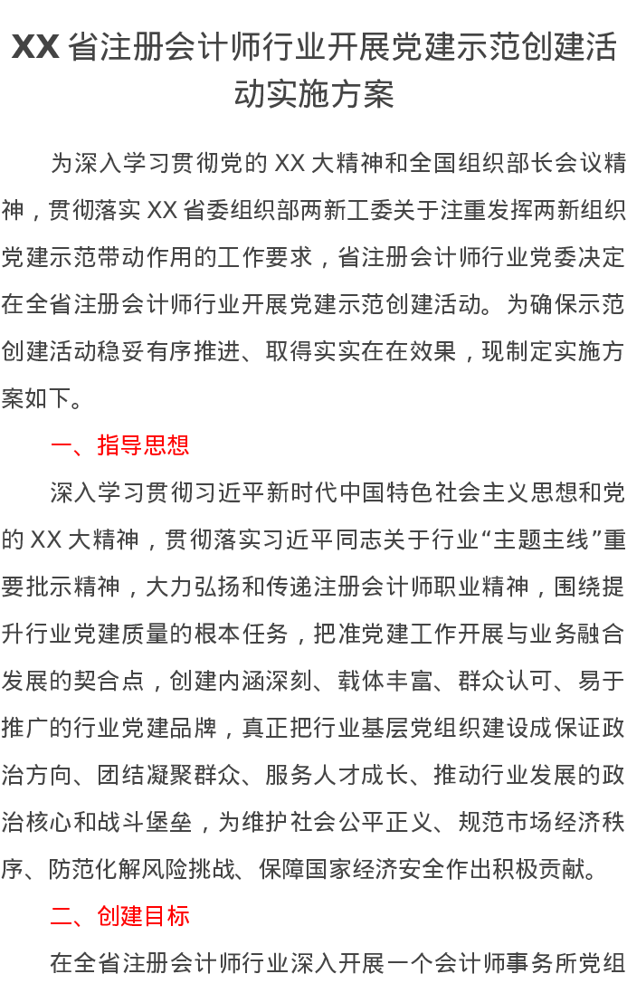 XX省注册会计师行业开展党建示范创建活动实施方案