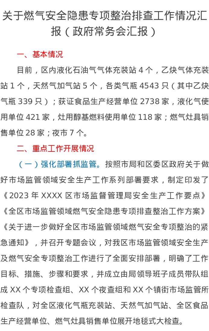关于燃气安全隐患专项整治排查工作情况汇报(政府常务会汇报)