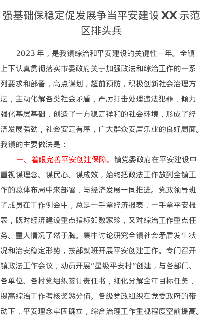 强基础保稳定促发展争当平安建设XX示范区排头兵汇报