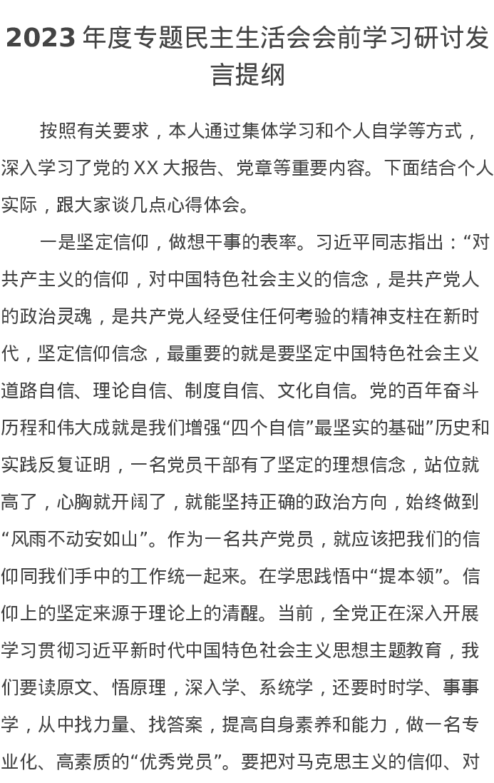 2023年度专题民主生活会会前学习研讨发言提纲4(特色社会主义思想)