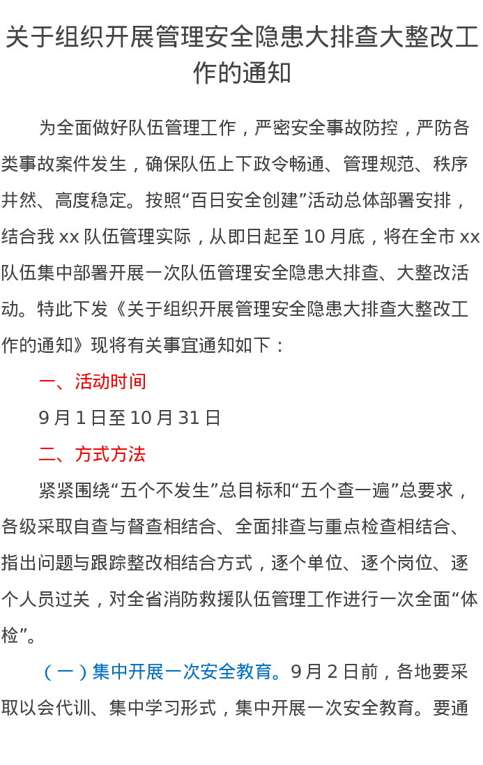 关于组织开展管理安全隐患大排查大整改工作的通知
