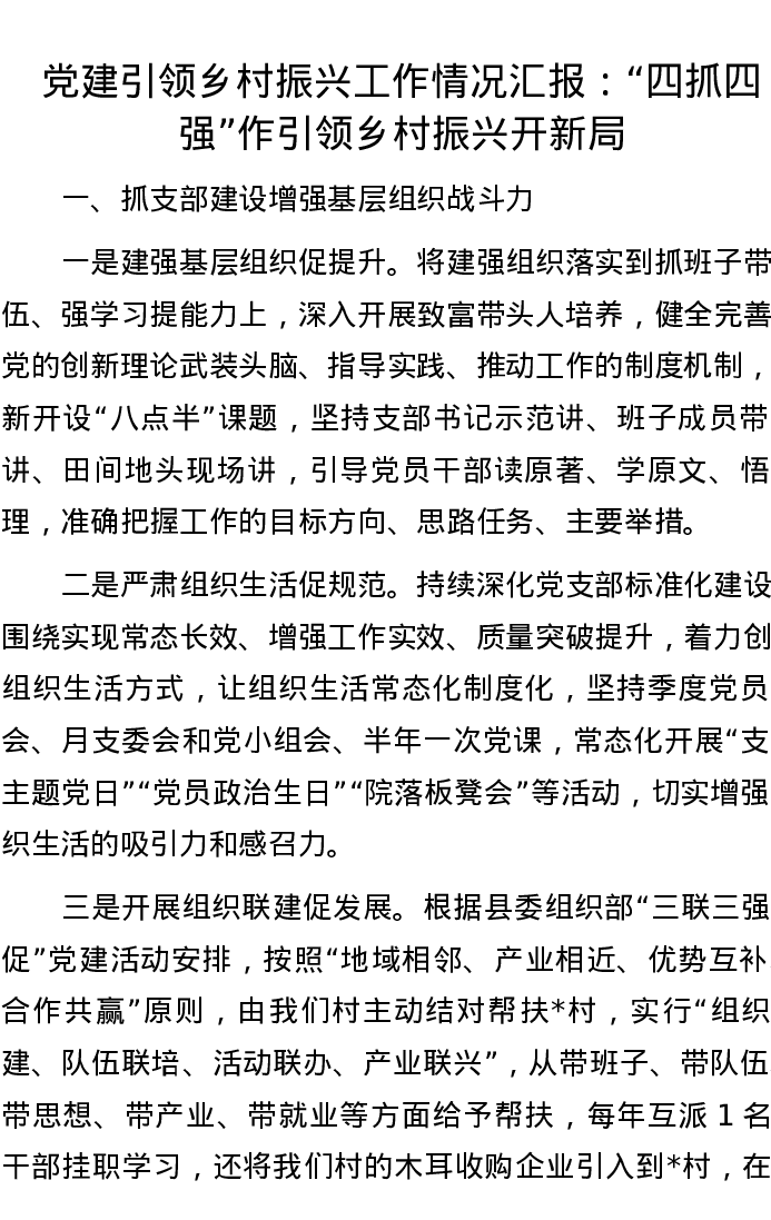 党建引领乡村振兴工作情况汇报:“四抓四强”作引领 乡村振兴开新局