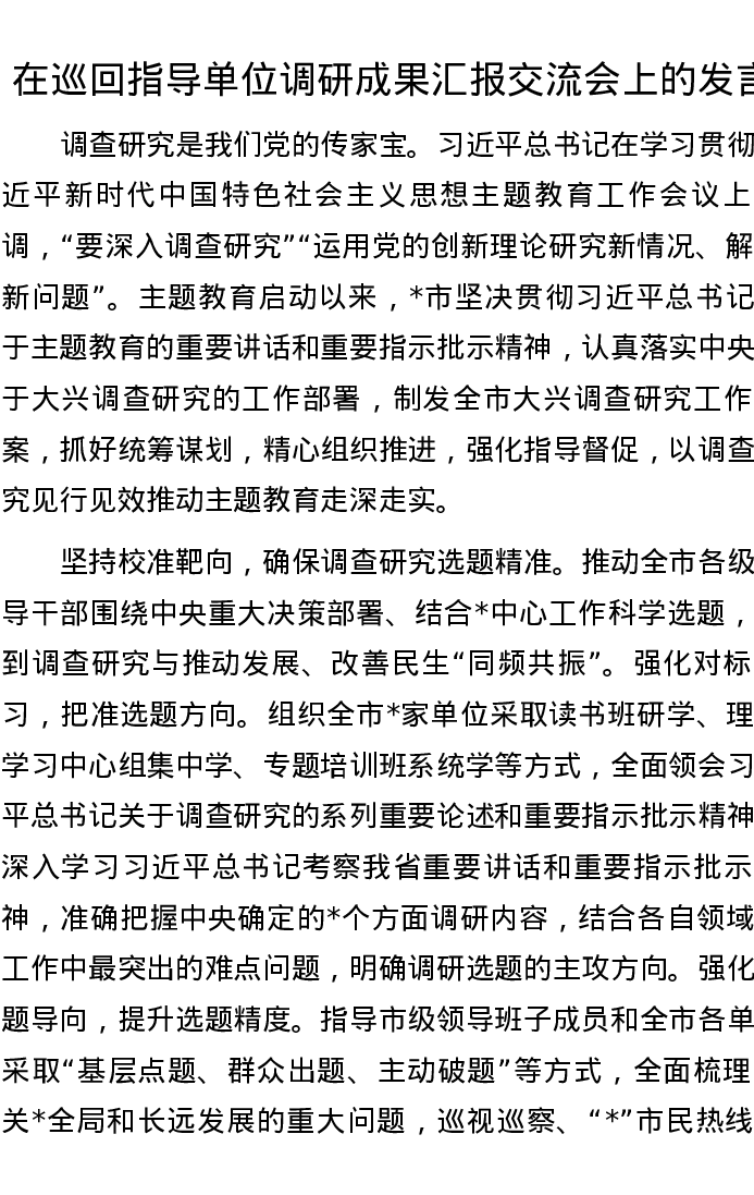 在巡回指导单位调研成果汇报交流会上的发言