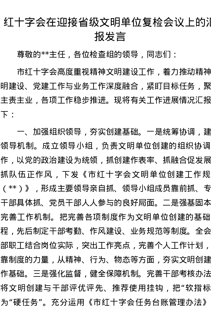 红十字会在迎接省级文明单位复检会议上的汇报发言