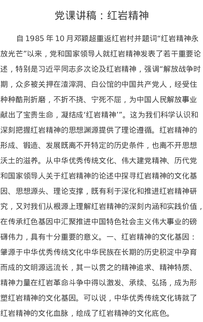 党课讲稿:红岩精神