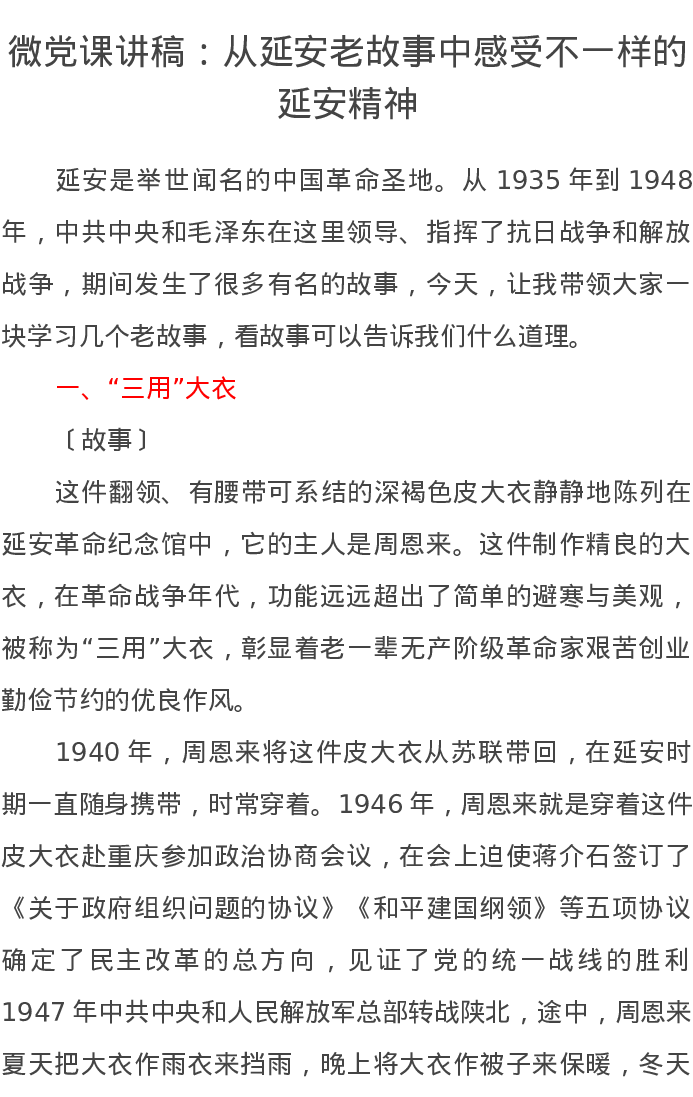 微党课讲稿:从延安老故事中感受不一样的延安精神