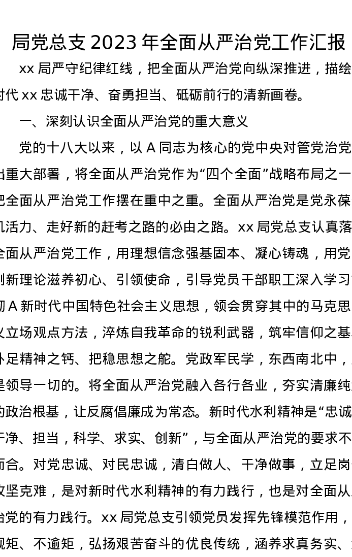 局党总支2023年全面从严治党工作汇报