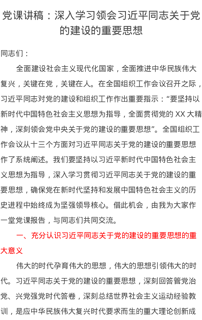 党课讲稿:深入学习领会习近平总书记关于党的建设的重要思想