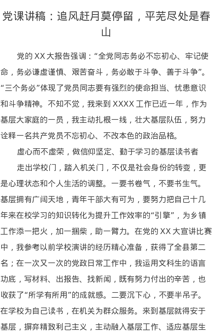 党课讲稿:追风赶月莫停留,平芜尽处是春山