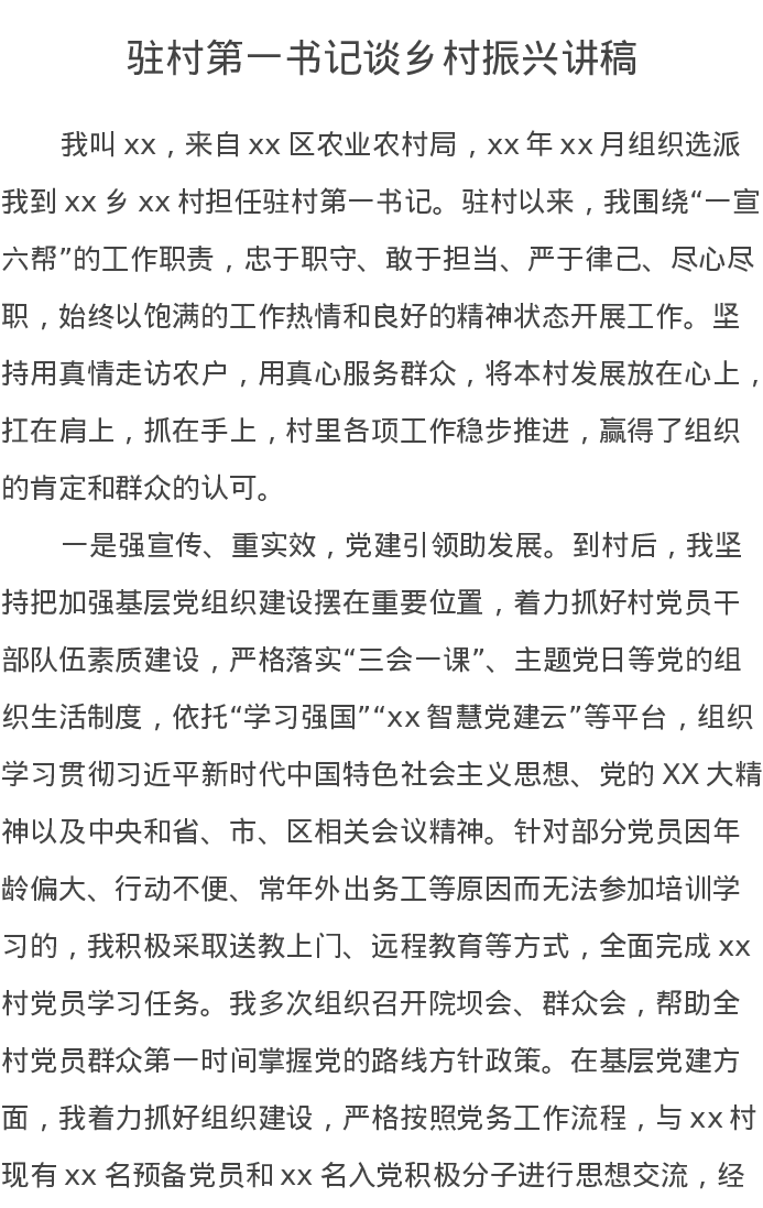 驻村第一书记谈乡村振兴讲稿8