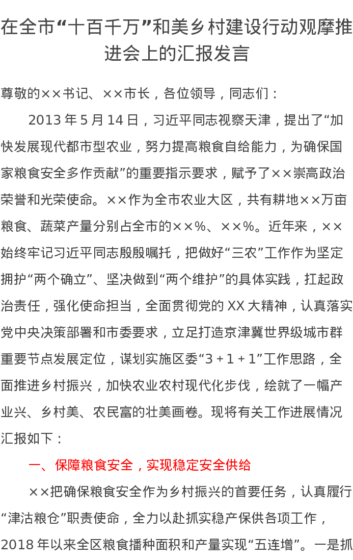 在全市“十百千万”和美乡村建设行动观摩推进会上的汇报发言