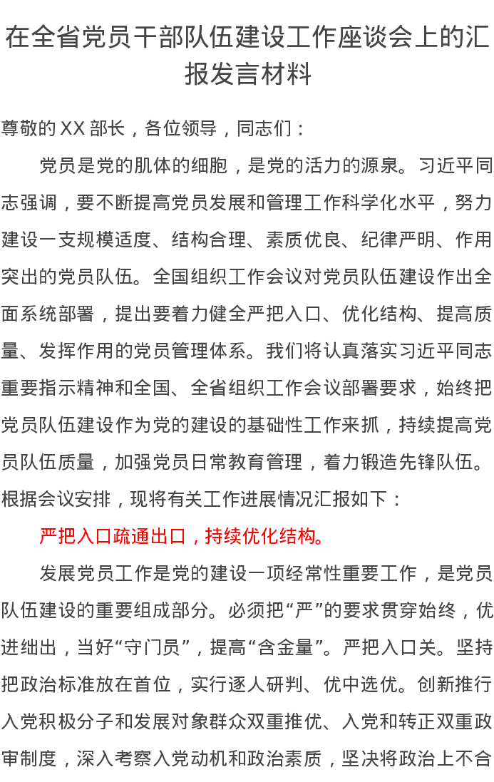 在全省党员干部队伍建设工作座谈会上的汇报发言材料