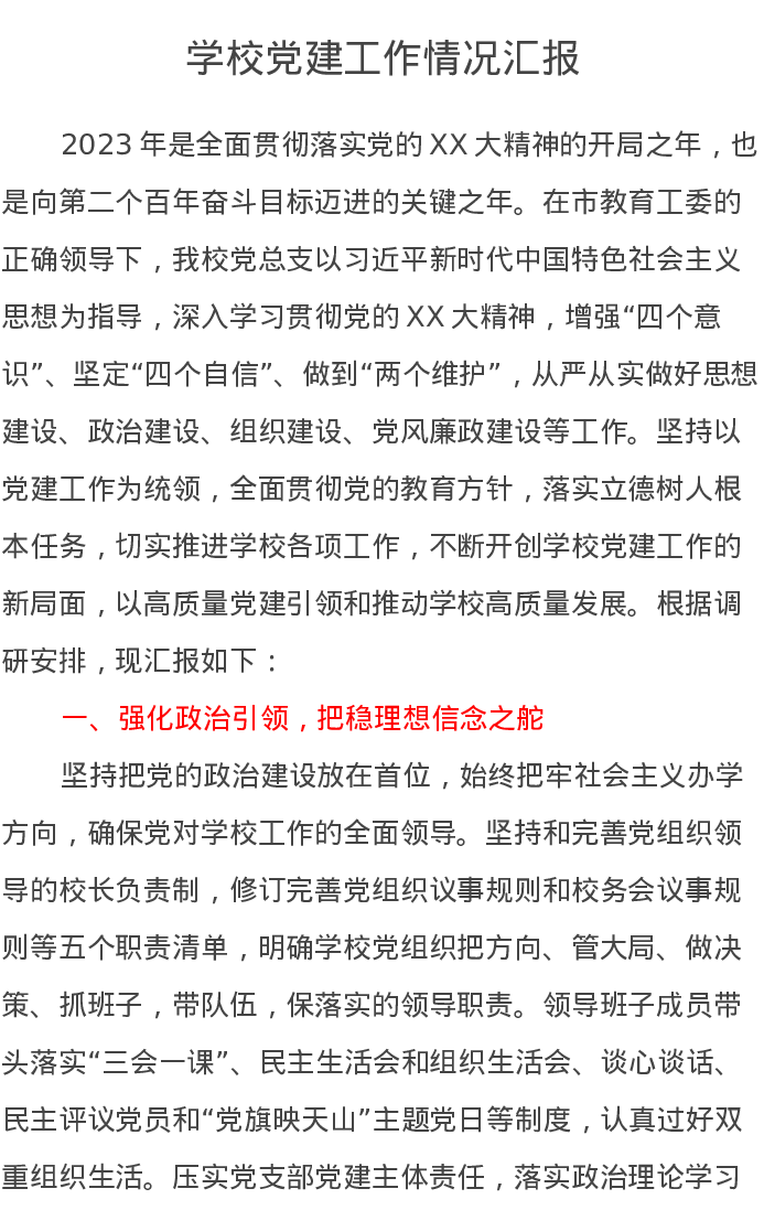 学校党建工作情况汇报