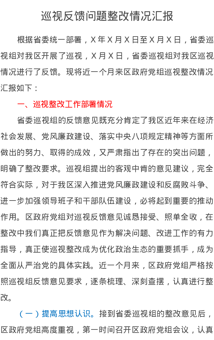 巡视反馈问题整改情况汇报