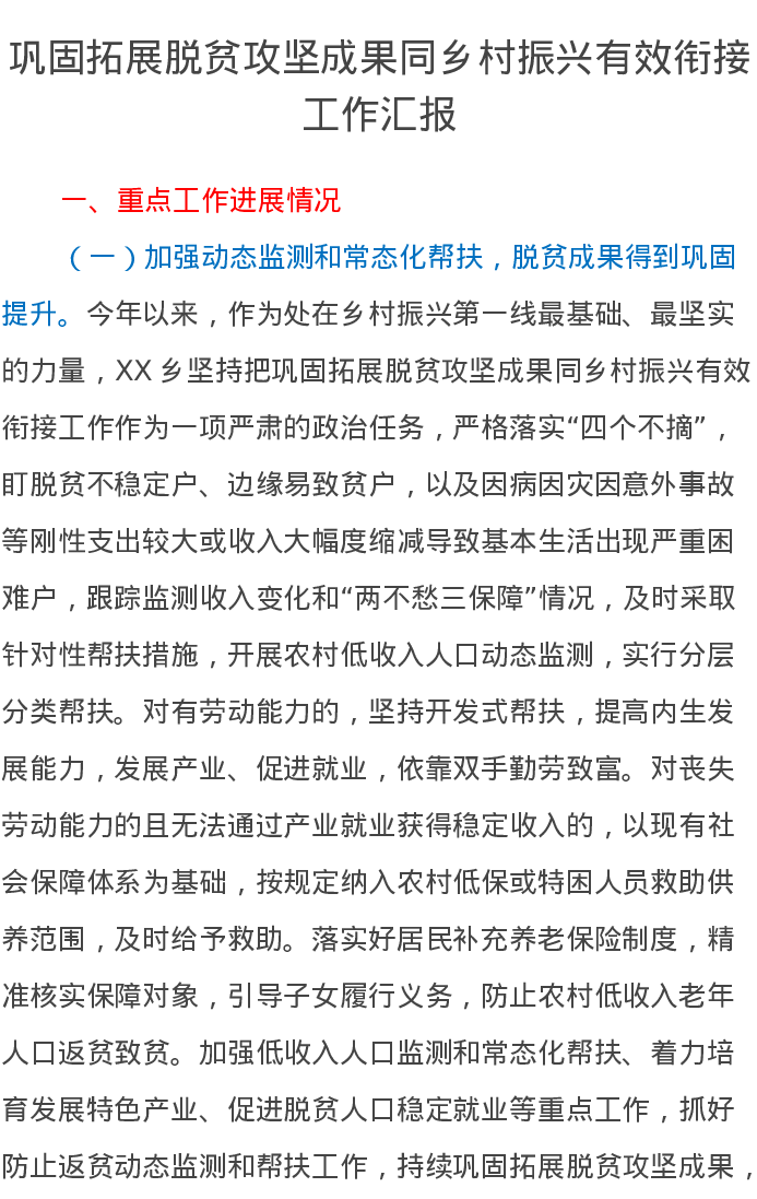 巩固拓展脱贫攻坚成果同乡村振兴有效衔接工作汇报