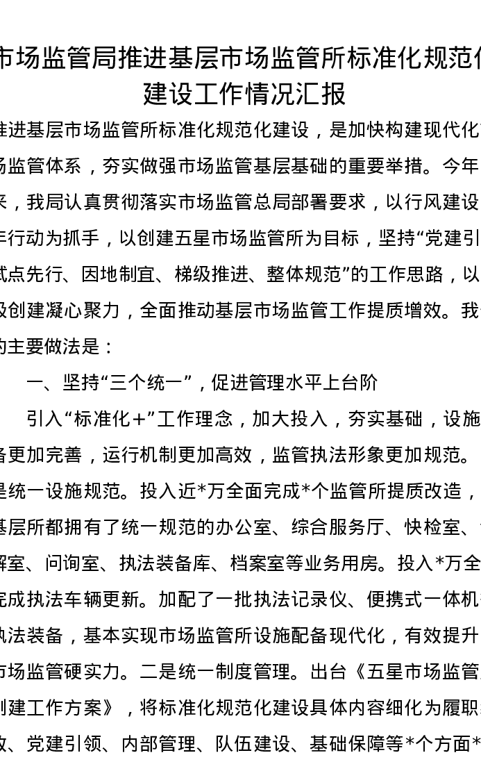 市场监管局推进基层市场监管所标准化规范化建设工作情况汇报