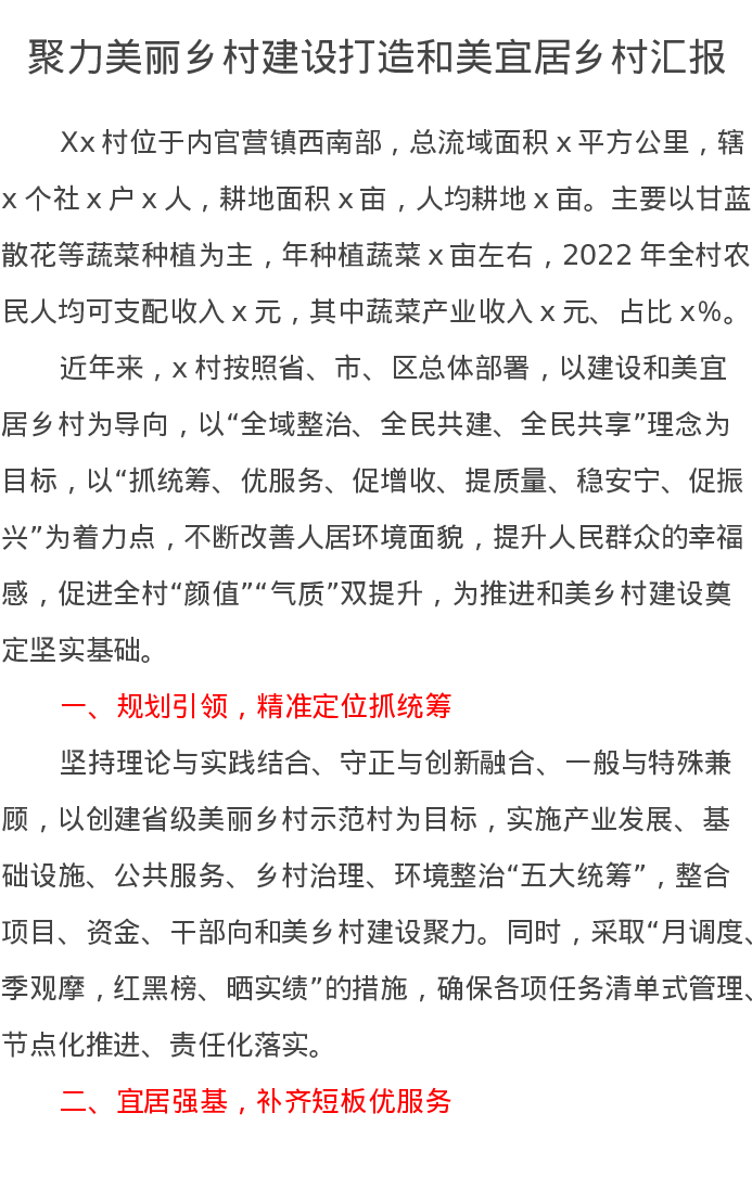 聚力美丽乡村建设打造和美宜居乡村汇报