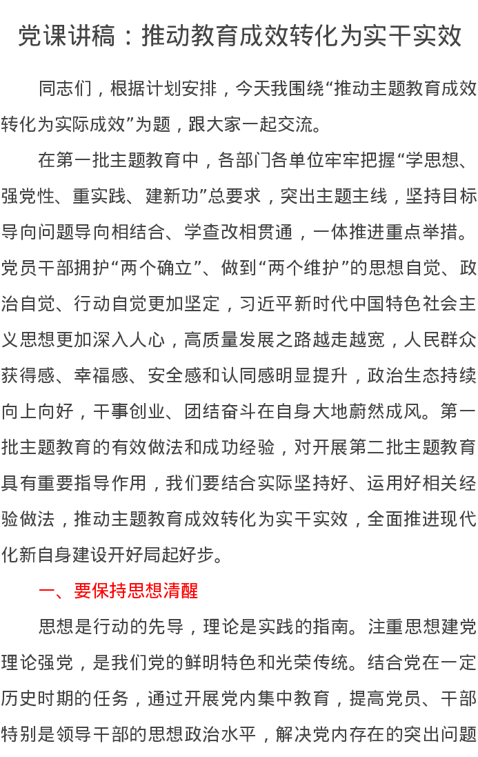 党课讲稿:推动教育成效转化为实干实效